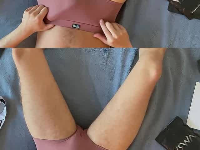 Assjob with hot fitness gal afther workout-ejaculation on sport panties