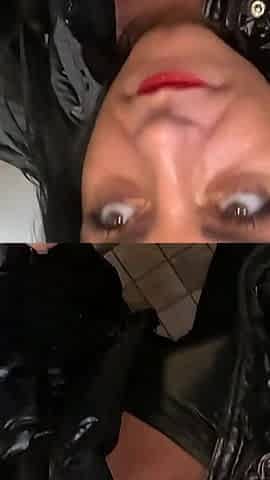Sexy Wife Cara fucked in Leather and cum on clothes