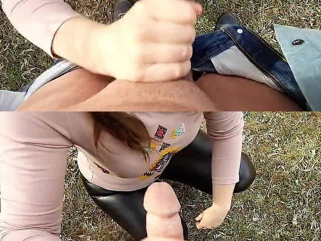 Gorgeous beauty gives outstanding POV tugjob and finishes him with a biggest spunk fountain.