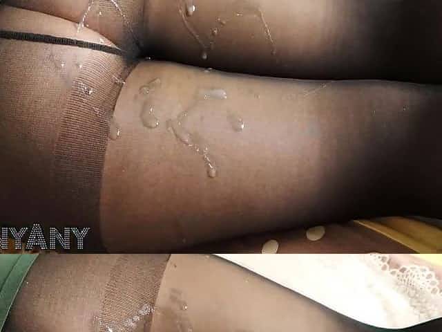 Cum clothes, shiny pantyhose