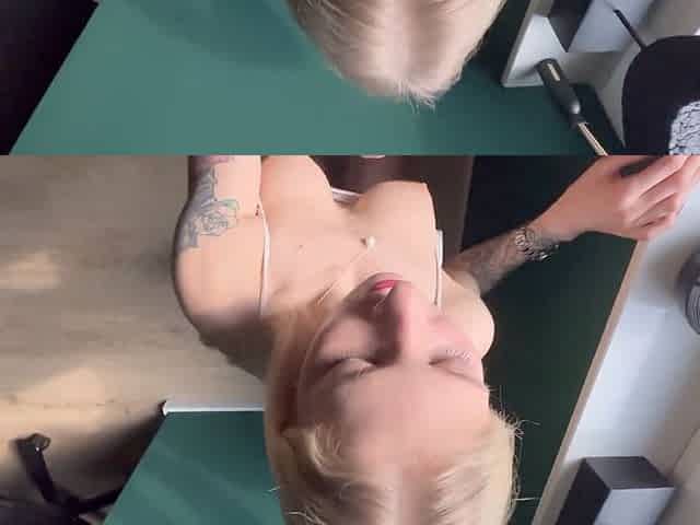 Naughty blonde milf gives messy point of view oral pleasure and receives creampie upside down