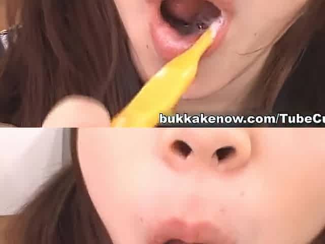 Melody Nakai mixes up a collection of cum to drink down her throat