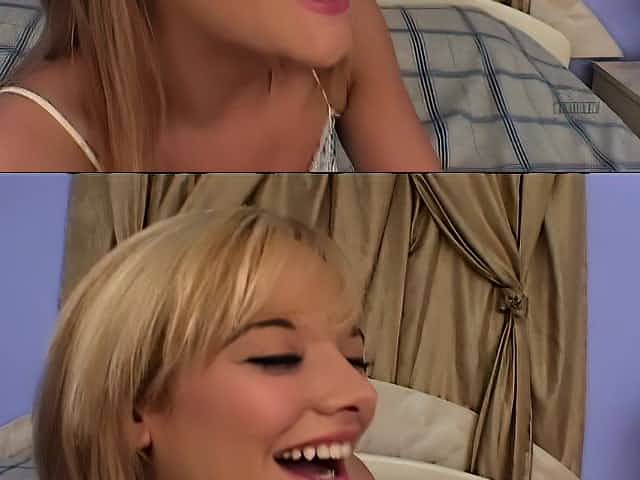 Charming blonde teen Kelsey gets her pussy fucked deep and her mouth filled with cum