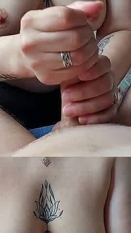She Jerked off Her Lover's Cock Until It Exploded in a Fountain of Cum