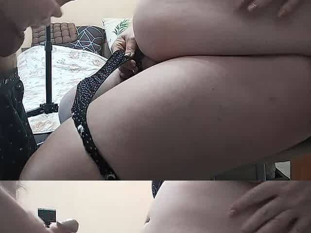 Stuffing ebony lace pants into my juicy snatch then cumming hard on 'em