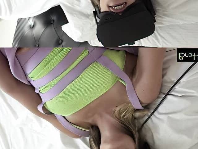 Cute nerdy hottie Sloan Harper is lying on the bed and sucking a dick