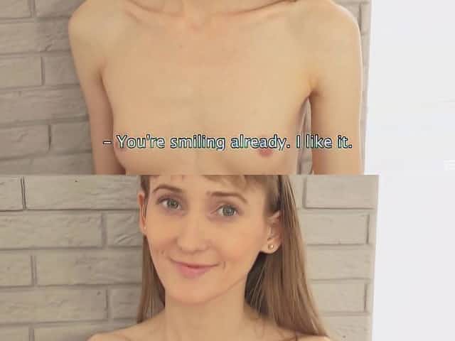 Petite blonde chick lets her new muscular lover to do the penetration
