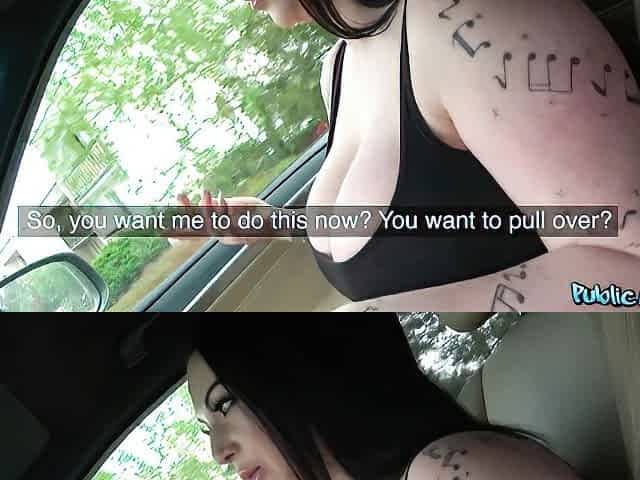 Fake Driving School - Breathtaking brunette hair with large bazookas banged in a car