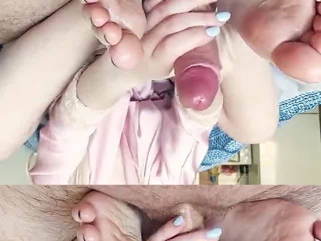 footjob and handjob with cumming on feet