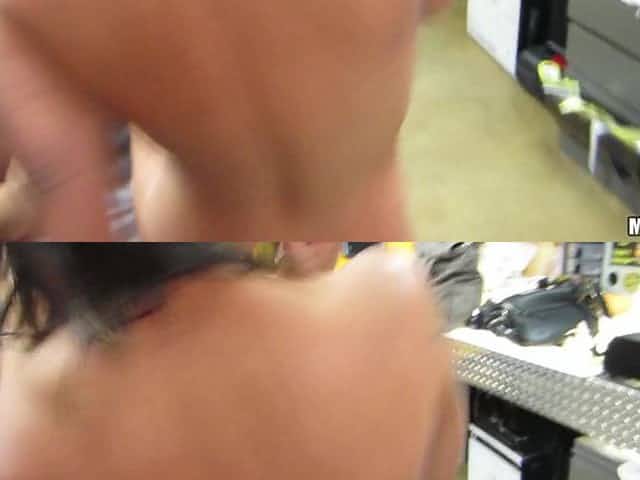 Trying leather clothes in Changing room and he Cum on my Big Boobs - Cock2squirt