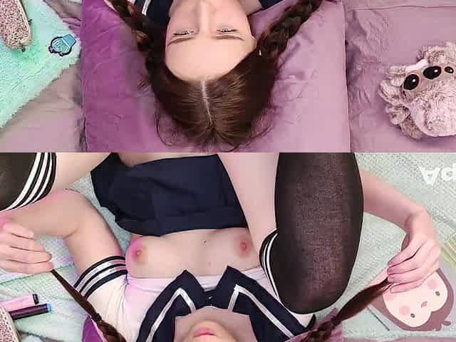 Cum on face end for small tits Asian slut