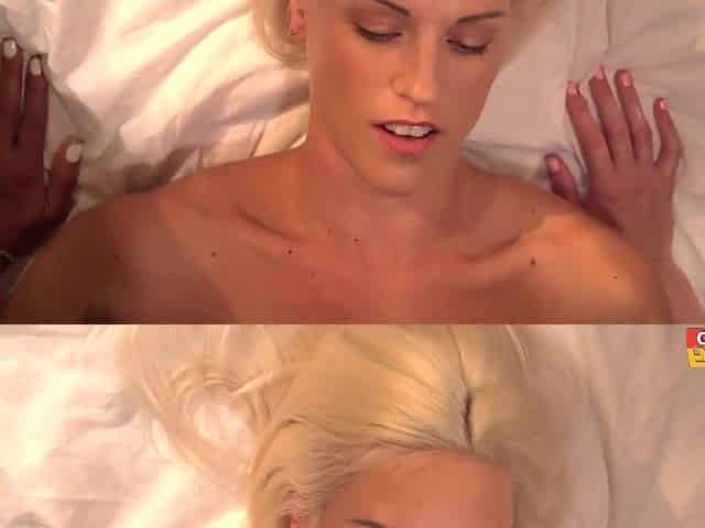 sexy blonde in bikini in homemade interracial with cum on face