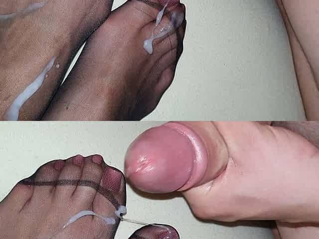Cum on nylon feet #14