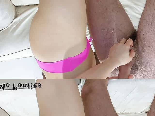 Stepdad finger fucks wet pussy and cums on her ass