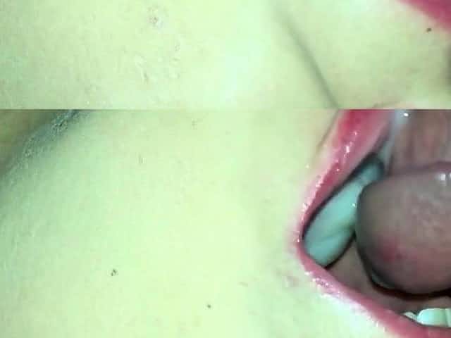 Of Cum In My Mouth! I Suck With Red Lipstick And He Cum In My Mouth And On Tongue Pov