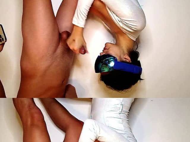 Blindfold, cum play, cum on tongue