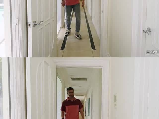 Fitness Workout ends in Surprise Gym Threesome For Cleaner - brunette slut Julia De Lucia