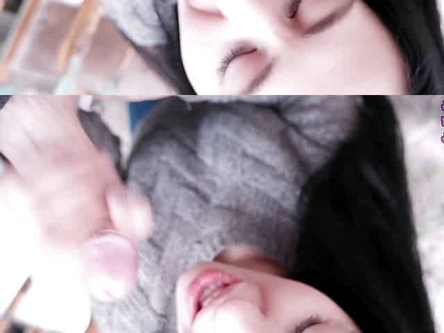 Shocked by cum in mouth! Outdoor blowjob and swallow cum