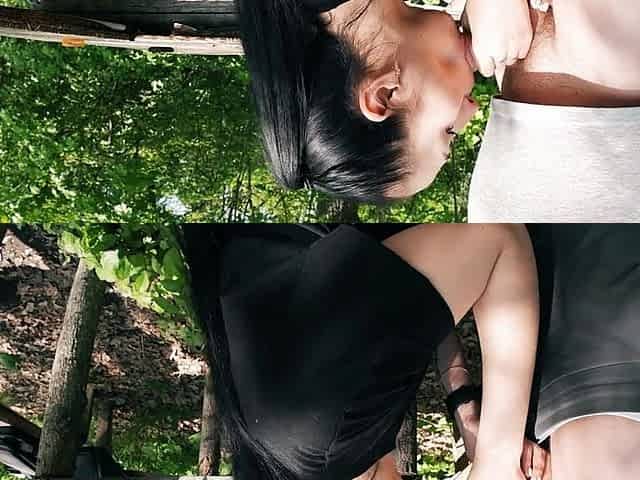 Pro Blowjob by Ponytail Brunette Slut in the Woods - Black Lynn Sucks and Swallows Cum Outdoor