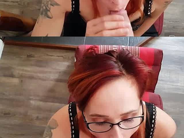 Steamy Redhead Provocative Suck and Jack Off