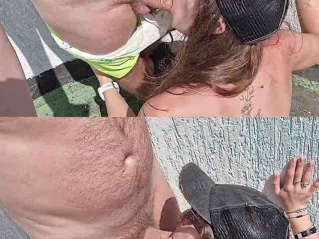 oral on the roof of the hotel, cum on breasts and a walk with semen