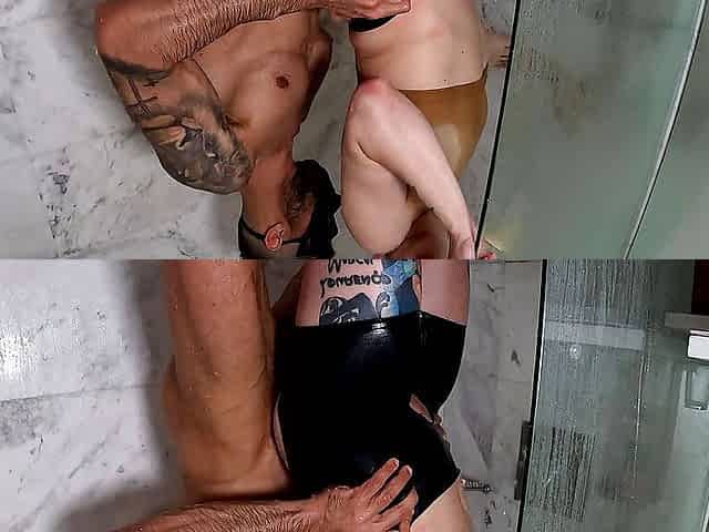 I powerfully cum when he fucked me hard in the shower after a walk near the ocean
