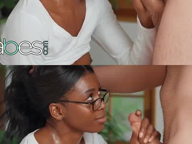Ebony babe with fitness body Nicole Kitt sucks ivory cock and gets fucked