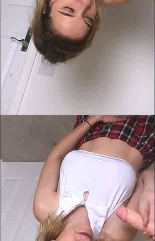 Curious Blonde Teenies Deepthroat in Red Stockings