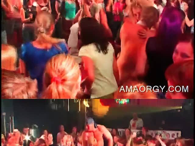Hot brunette gets cunnilingus at a CFNM sex party