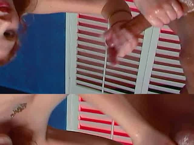 Hotty with split tongue licks a sweetmeat and puts in butt