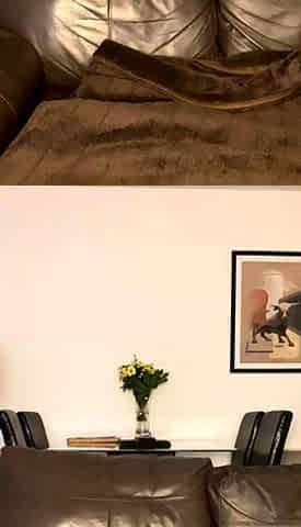 Busty curly brunette with big boobs fucks on couch
