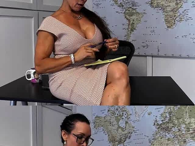 This babe screws her constricted snatch in the office with a chunky sex toy