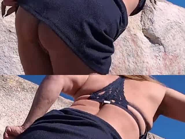 Pee, undress, show pussy and fuck my ass on the beach till squirt