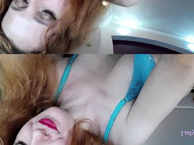 Redread milf show her favorite big dildo and posing in lace bra and panties