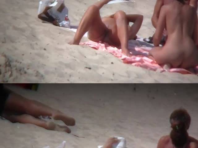 Stunning women relaxing naked on a sunny beach