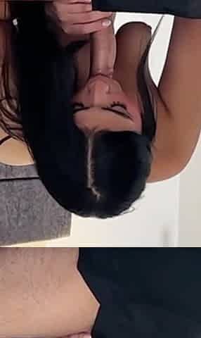 Beautiful girl gives a rough blowjob with a messy ending.