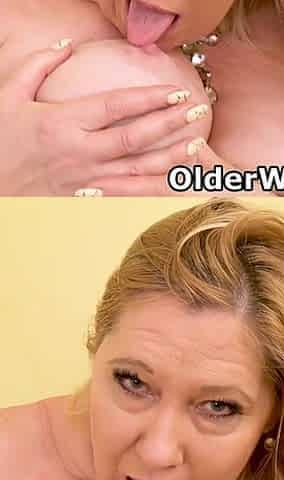 Old lady gets her senior cunt gaped and fingered