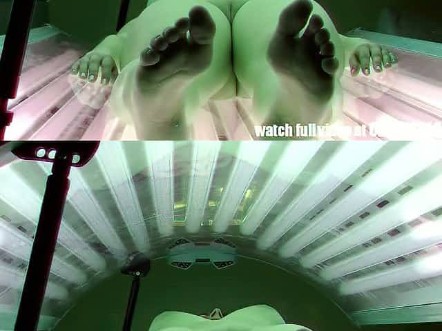 Good looking Czech nympho is working on her tan in solarium