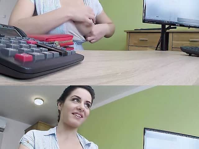 Big tits brunette will do whatever it takes to get a new loan