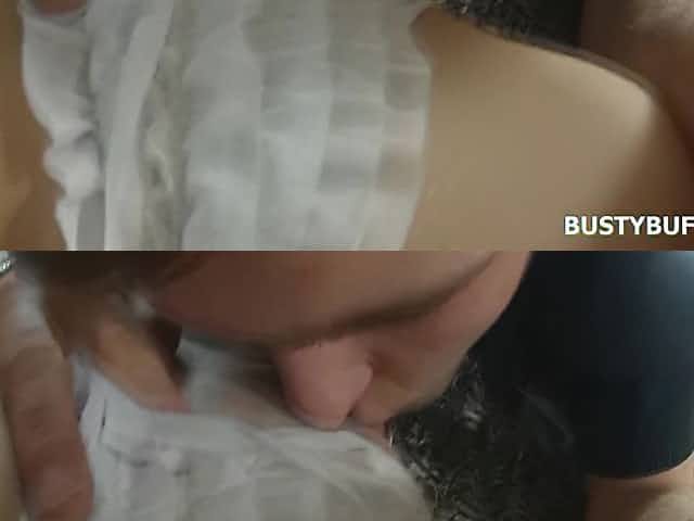 18yo very busty Buffy Enjoys Massive male milk on her Natural Boobies
