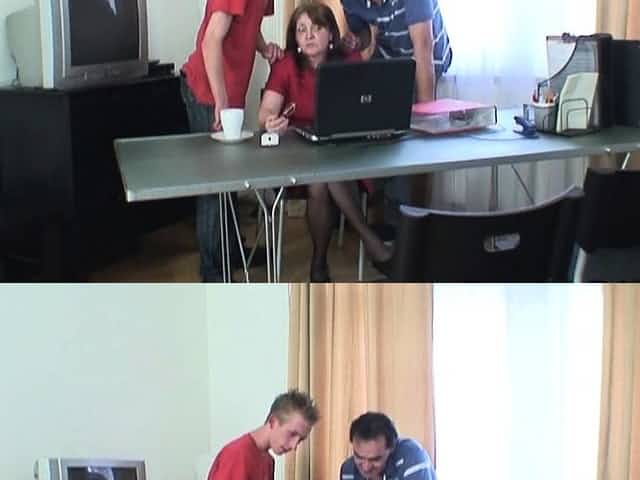 Very old granny threesome sex in the office