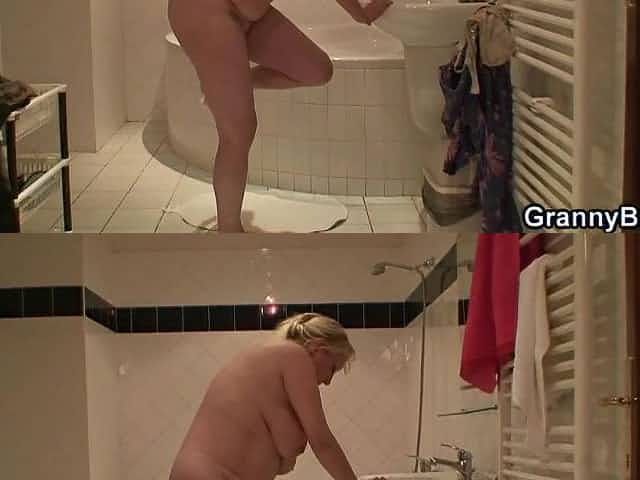 78 years old grandma has fun in the bathtub