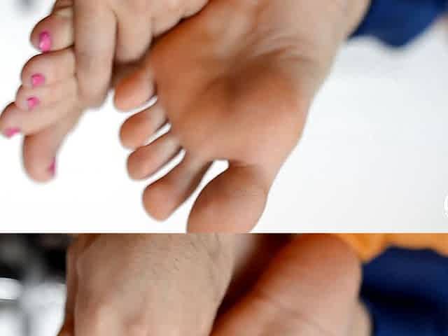Rubbing lotion on her sexy rough soles