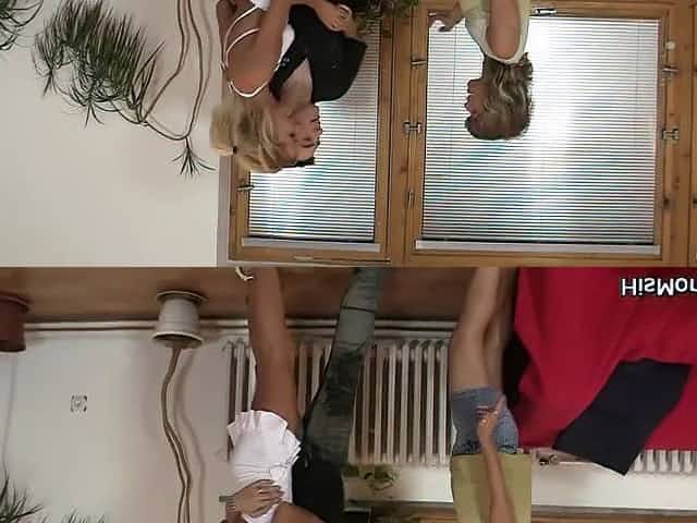 Very old blonde cleaning granma takes two cocks