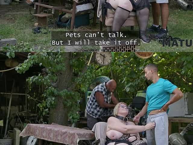 MATURE4K. Blonde with huge ass doesn’t mind to cheat on her husband with 2 strangers in public