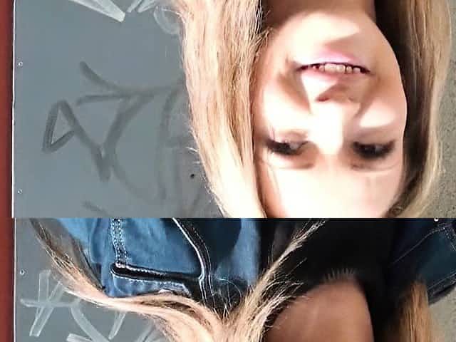 Czech amateur blonde bangs in bushies in public