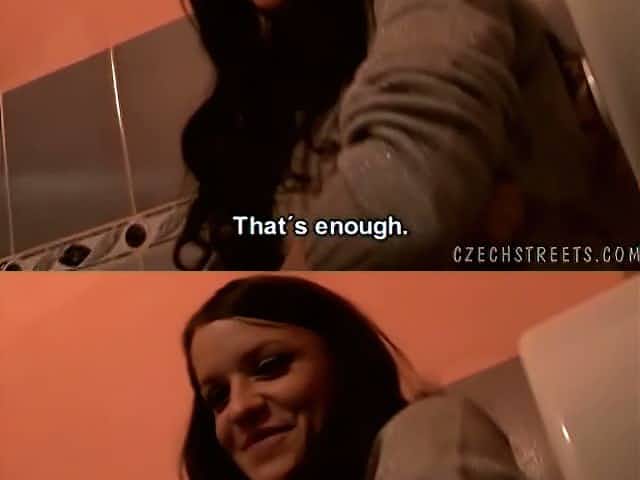 Cum-addicted Czech gal gives her friend a nice blowjob in the restroom