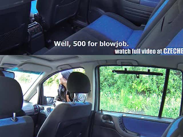 Frivolous Czech chick gives a blowjob in the car and gets her pussy rammed on the sidelines