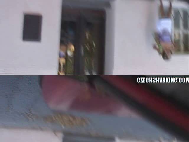 Shameless Czech Cutie Pisses Out Her Window On The Street!