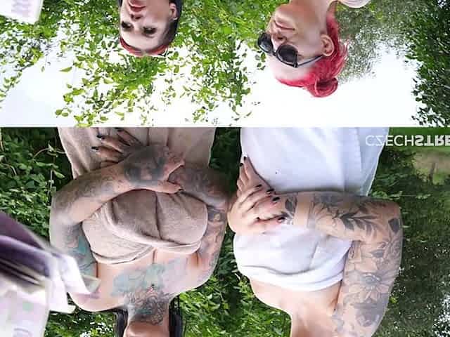 CZECH STREETS - Fucking 2 random chicks on a secret nude beach in Prague